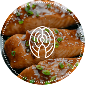 Salmon steak under oyster sauce
